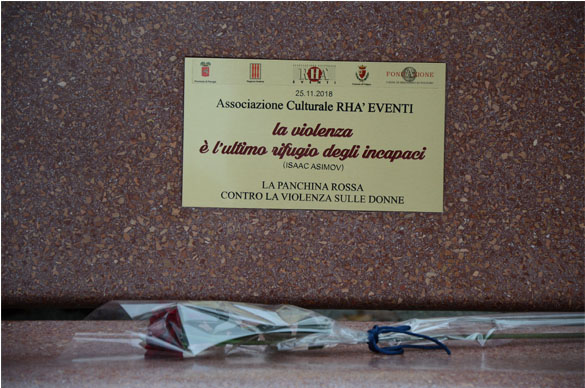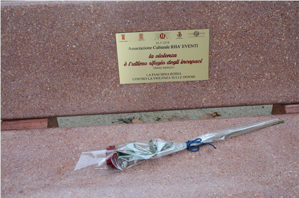 alla presenza delle istituzioni, enti, associazione e cittadinanza, si procederà con l’inaugurazione della “Panchina Rossa Contro La Violenza Sulle Donne” realizzata dall’ Associazione Culturale Rhà Eventi di Foligno con il supporto tecnico dell’architetto Luciano Piermarini.