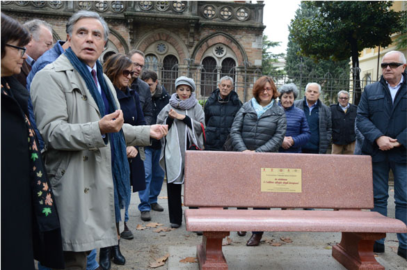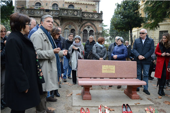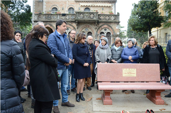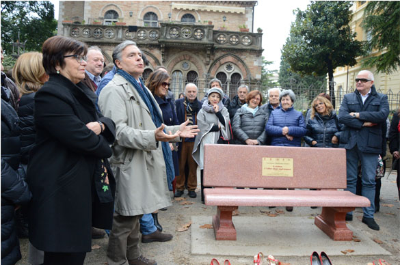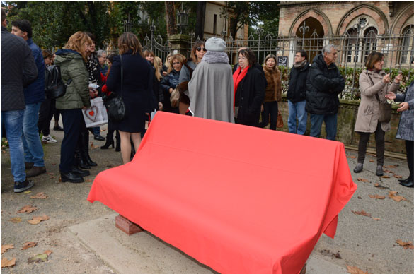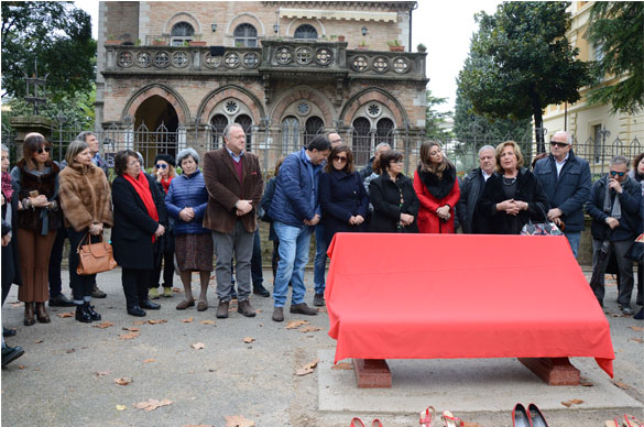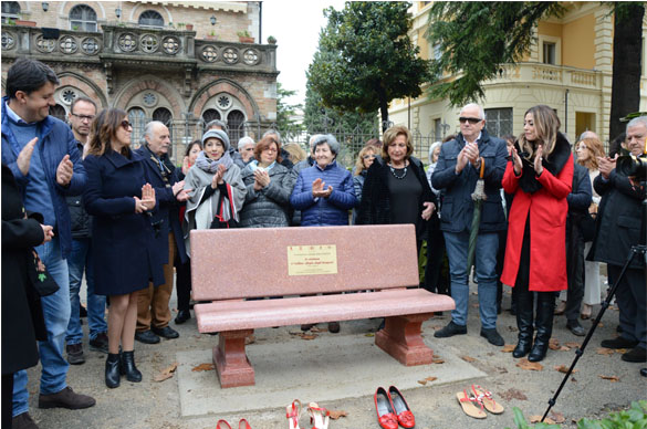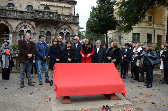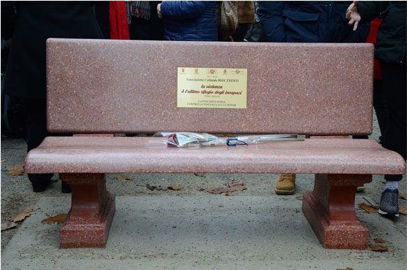 Hanno collaborato il Comune di Foligno, la Presidenza del Consiglio Regionale Regione Umbria, la Provincia di Perugia, la Fondazione Cassa di Risparmio di Foligno, l’Associazione Liberamente Donna di Perugia, l’ Associazione Italiana Sclerosi Multipla Aism e la Ditta LaSegoloni srl di Ponte Felcino. Sulla panchina verrà realizzata una targa che riporta la frase di ISAAC ASIMOV scrittore e biochimico russo: “LA VIOLENZA E’ L’ULTIMO RIFUGIO DEGLI INCAPACI”