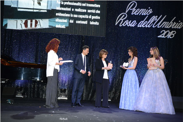 L’edizione del Premio Rosa dell’Umbria 2018 si conclude con lo spettacolo finale condotto da Paola Saluzzi (famosa conduttrice televisiva della Rai, Sky e Tv2000) e Manuela Marinangeli (giornalista, conduttrice umbra di tanti programmi televisivi e presentatrice di eventi) sotto la direzione artistica di Guido Chiodini e la direzione organizzativa di Barbara Chiodini.